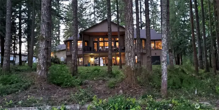 Discover lakeside living at its finest in this immaculate 2017 home with stunning Silver Lake and mountain views. Designed for comfort and style, the gourmet kitchen boasts granite counters, ceiling-high cabinets, butler pantries, double ovens, built-in microwave, 5-burner gas stove, and two oversized islands. Enjoy cozy evenings in front of 1 of 3 fireplaces. The spacious primary retreat overlooks the lake with spa bath; double sinks, soaking tub, and walk-in shower. A fully finished walk-out basement offers added living space with sliding doors, carpet, and bath off every bedroom. Built-in vacuum system. Outside is a quiet wooded setting with a huge 4-bay shop with 1 lrg RV bay & metal roof. A boater's dream -This home has it all!