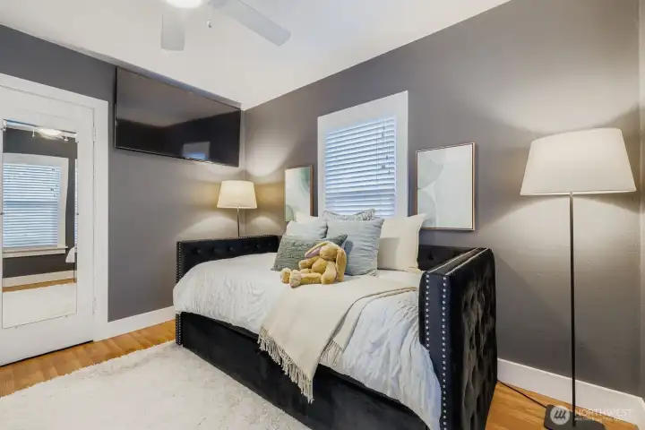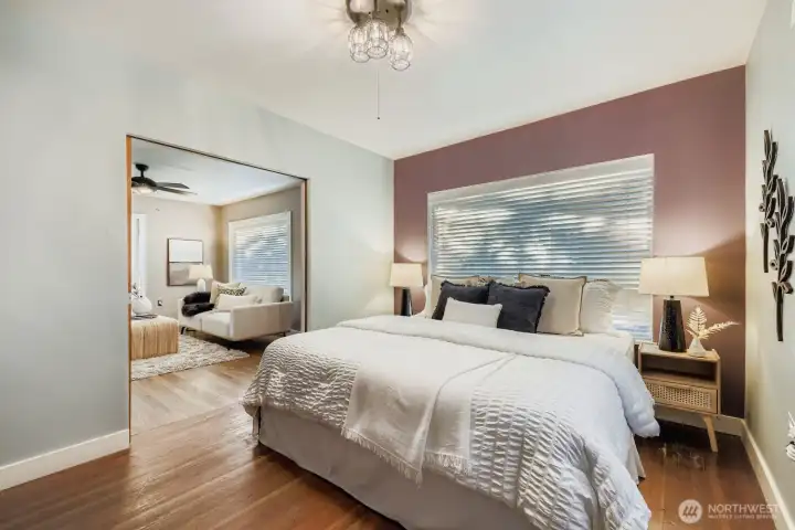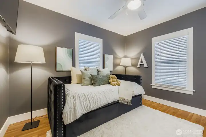 Perched in beloved Seaview, this charming craftsman blends classic character with crisp updates. Original hardwoods & warm gas fireplace anchor the cozy living room that opens to a covered deck made for year-round entertaining & watching the West Seattle sunsets over the Puget Sound. The refreshed kitchen shines with stainless steel appliances, black-stone backsplash, & a unique spiral staircase to the basement. Recent kitchen & bath remodels plus fresh interior paint make everything feel bright & move-in ready. Dine with a view of your private backyard with a patio & fruit trees. A detached garage & off-street parking keep life easy. All in a fantastic location, just moments to Alki Beach, Lincoln Park, and the Alaska & Morgan Junctions.