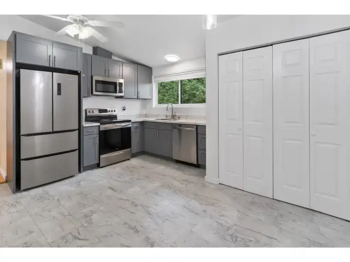 Welcome to this charming 3-bedroom rambler, perfectly situated on a spacious 10,000 sq ft lot. Tucked away in a quiet cul-de-sac for added privacy, it also features a paved secondary driveway leading to the backyard, ideal for extra parking for all your recreational toys. The home includes a garage, newer roof & windows, fenced backyard, and a bonus space for storage. The kitchen has been beautifully remodeled with modern cabinetry, quartz countertops, new flooring, and updated light fixtures. Enjoy real hardwood floors throughout the bedrooms and living areas, plus a recently replaced roof.