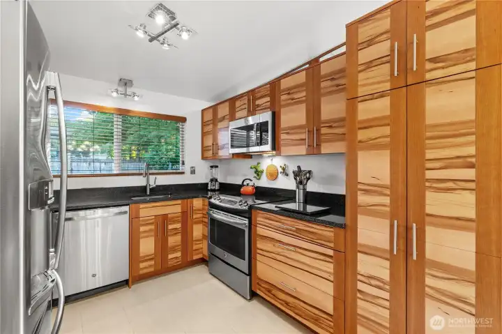 In the heart of Bellevue, this updated 3-bedroom, 1.75-bath rambler is truly one-of-a-kind! The primary suite features an attached bath with a luxurious waterfall/rain shower, while the kitchen shines with stainless steel appliances and cabinets galore. Artistic touches and thoughtful design details flow throughout, complemented by abundant natural light and a warm, inviting atmosphere. Enjoy an attached dog kennel for effortless pet care, garage, and ample driveway parking. The fully fenced backyard is a private oasis with a large patio, lush plants, trees, and berry & vegetable garden beds — perfect for relaxing or entertaining. Prime location just minutes from downtown Bellevue, Microsoft, Amazon and with easy access to I-90 and I-405.