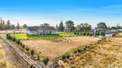 On a manicured 3.2 acres, this high-end home with 3 bedrooms plus an office exudes exceptional craftsmanship and luxury. The open concept great room impresses with vaulted ceilings, a cozy propane fireplace, solid hardwood floors, and a wall of windows showcasing breathtaking views of Banks Lake and its dramatic basalt cliffs. The spacious primary suite offers double sinks, a beautifully tiled shower, and a big walk-in closet. The gourmet kitchen is a chef’s delight, featuring a gas stove, custom cabinetry and granite countertops. Step outside to the Trex deck to soak in the scenery, or to enjoy the insulated, fully finished, RV-sized 1700+ sq ft shop with 864 sq ft guest quarters - perfect for visitors, storage and extra workspace.