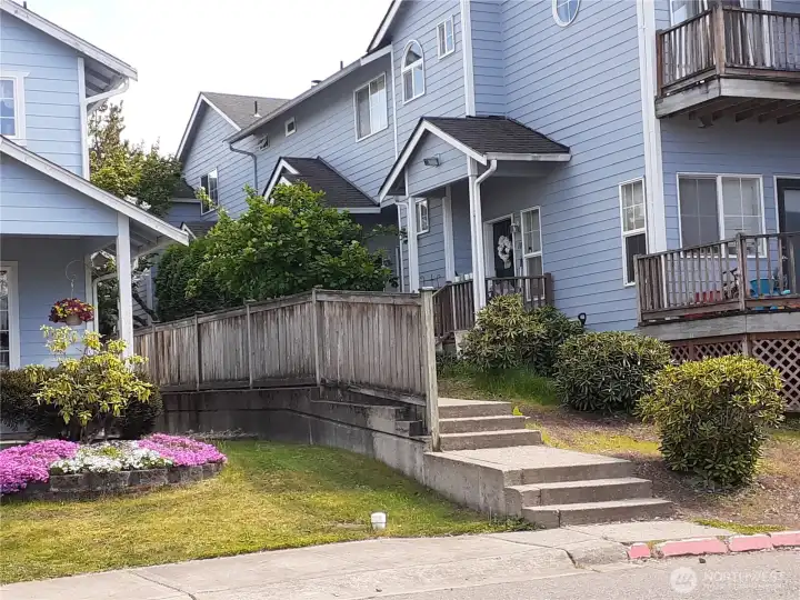 Main Floor has living room. Open Kitchen to the dining area. Balcony and deck with sliding glass door opens to patio. Main floor has 1/2 bathroom, and fireplace. Two bedrooms upper level second floor. Bedrooms with vaulted ceiling. Second floor full bathroom. LakePoint Village is ideal location across from LakePoint Park. Close to shopping, restaurants and schools.