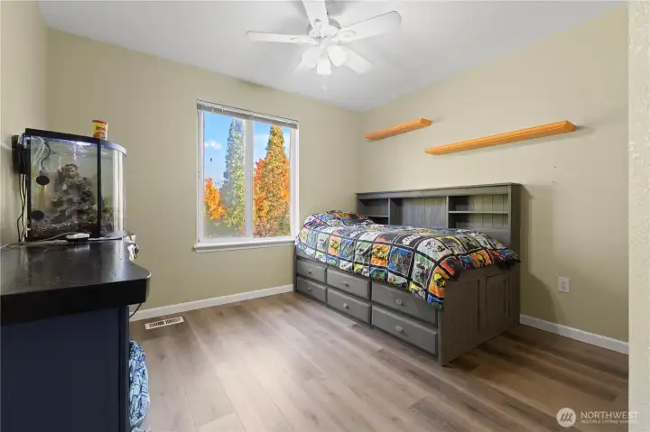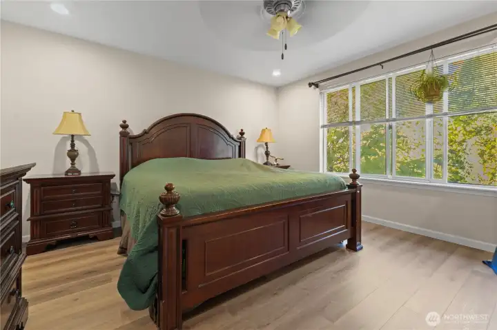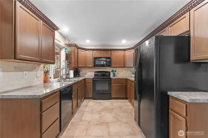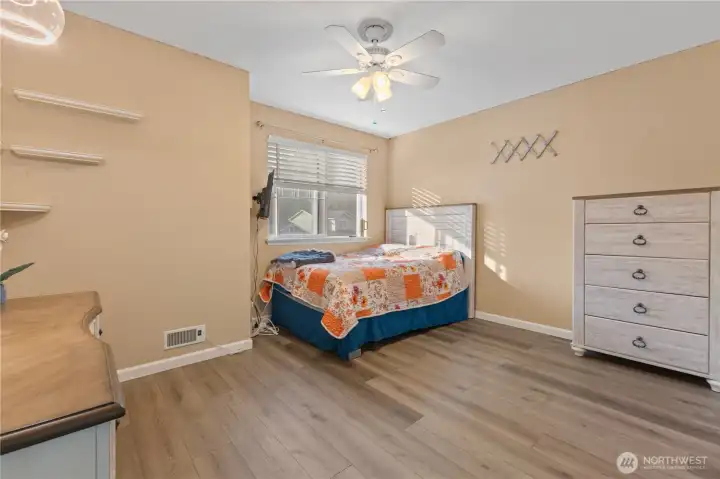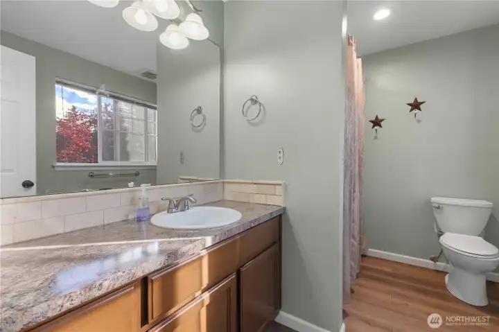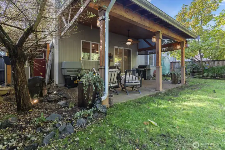 Welcome home! This beautifully maintained residence offers comfort, style, and functionality throughout. The open kitchen flows seamlessly into a warm dining area highlighted by a cozy gas fireplace, perfect for gatherings or quiet evenings in. Enjoy a spacious family room with bright eastern exposure, ideal for entertaining or relaxing. Upstairs features three generously sized bedrooms, including a primary suite with a private ensuite bath, plus a conveniently located laundry room. Step outside to a beautifully landscaped front and back yard, complete with an all-season covered patio for year-round enjoyment. The fully fenced backyard offers privacy with mature foliage, a perfect retreat you’ll love coming home to!