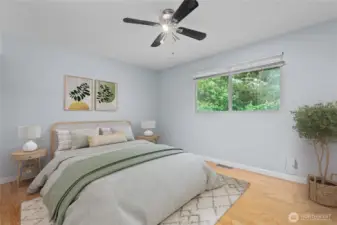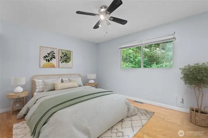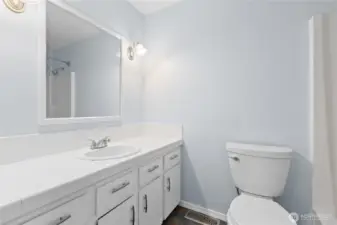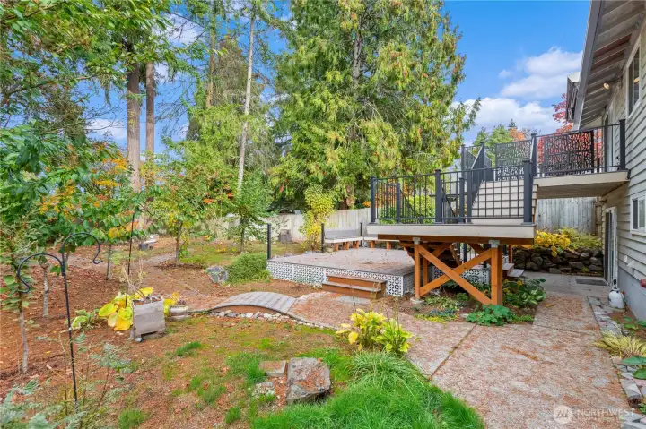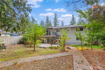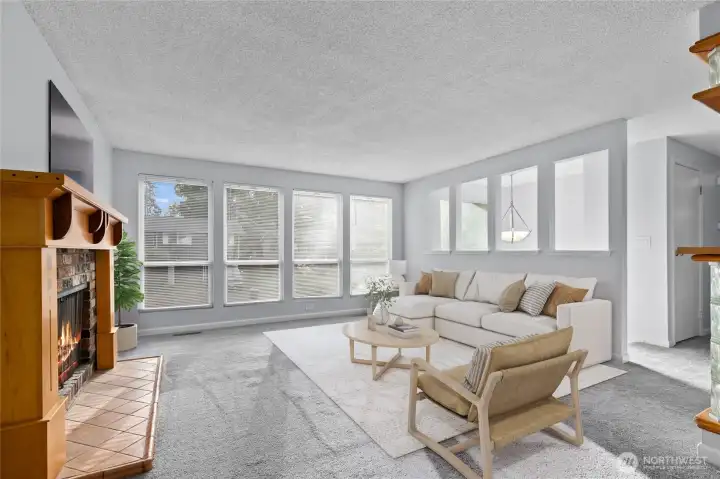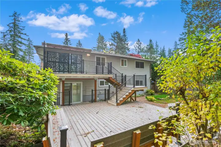 Welcome to this charming split-entry home in a peaceful Bothell neighborhood! With 3 bedrooms, 2.25 baths, and 1,658 sq ft of living space. The main level features a cozy fireplace, open living and dining areas, and access to a spacious multilevel Trex deck with awning overlooking a nearly .25 acre backyard - perfect for year-round entertaining or gardening. Downstairs includes a second fireplace and flexible space for a family room or office. Recent updates include a newer roof, new windows throughout and sliding door, brand new carpet throughout, and updated gutters. Enjoy easy access to Bothell-Everett Highway, Mill Creek amenities and nature trails. This move-in ready home has been pre-inspected for your peace of mind. Virtually staged.