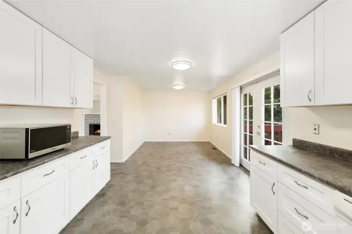 Spacious home with an excellent layout & many recent updates: newer furnace, water heater, vinyl siding, kitchen cabinets/appliances. Main level features large kitchen & enough space to add an island. Big newer vinyl windows on all windows and double sets of french doors from both levels. Large open living room has a fireplace & the walk out lower level offers a 3/4 bath, bedroom, and flexible area with wet bar and cabinetry—perfect for guests, extended living, or potential MIL setup. Big, level, westerly-facing backyard (lot is a shy quarter acre) and is ideal for play/entertaining. Generous square footage and a great Renton location, this home offers outstanding potential & room to personalize & add finishing touches. Sold as-is.
