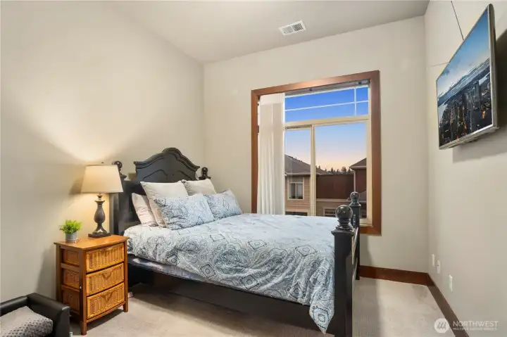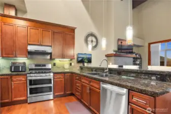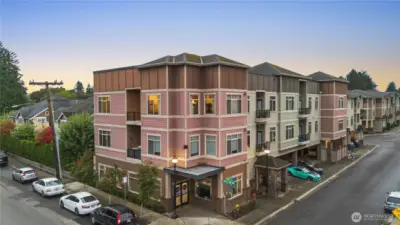 Top-floor corner penthouse unit boasting 17-foot high ceilings with exposed beams and abundant natural light! This stunning 2-bed, 2-bath condo features a chef’s kitchen with stainless steel appliances, granite countertops, plus pantry. Enjoy the warmth of the gas fireplace, beautiful cherry hardwood floors, and air conditioning for year-round comfort. The expansive primary suite offers a luxurious en-suite 5-piece bath and walk-in closet. The versatile office/flex space offers a quiet and comfortable area to work from home. Relax on your private balcony and take advantage of 2 covered parking spaces in this secure, elevator-accessible building. All this plus the convenience of an in-unit washer and dryer. This one is a must see!