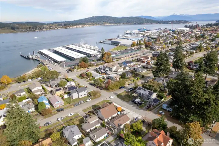 This is the home you’ve been waiting for! Perfectly situated 3bd 3ba home on corner lot in Old Town Anacortes. Wake up to water & Mt Baker views. Plenty of windows provide tons of natural light. Key features include two primary suite options (upper & main floor en-suites). 3rd bd features vaulted ceilings & one-of-a-kind hand-planed, hand-grooved clear fir floors, beautifully salvaged from the original property's garage. Relax on the huge front porch or enjoy the fully fenced, low maintenance, patio paver backyard. The ultimate bonus is the 500 SF detached 2-car garage + shop, which includes a 1/2 bath & loft for extra storage. Enjoy close proximity to the Guemes Channel waterfront, grocery stores, shopping, & dining on Commercial Avenue.