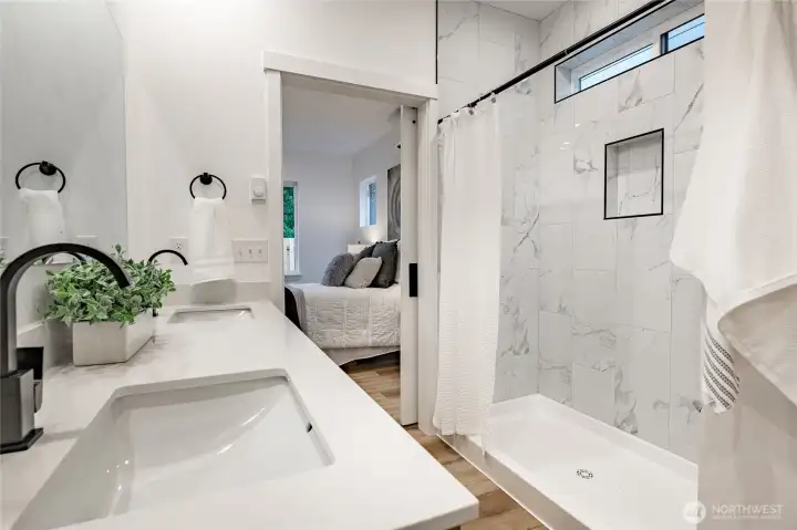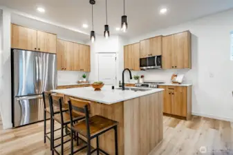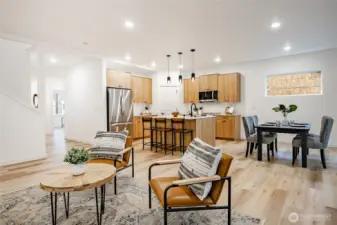 Discover the perfect blend of style, comfort, and convenience in this stunning new 4-bedroom home. The open layout invites you in with soaring ceilings, a cozy propane fireplace, and durable luxury vinyl plank flooring. The modern kitchen stands out with flat-panel cabinets, quartz countertops, and upgraded appliances. Enjoy the covered back patio year-round—ideal for gatherings or quiet moments outdoors. Built on a solid slab-on-grade foundation with high-end finishes and energy-efficient systems for easy, low-maintenance living. Minutes from downtown Blaine, I-5, and the border. Preferred Lender Savings: .75% Lender Credit + $5,000 Seller Credit!