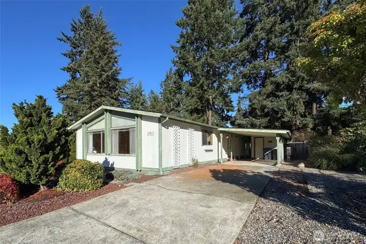 Welcome home - a place to embrace the heart & happiness - Parkwood is a mfg housing development for adults 55 years & over. 2 BR 2 BA 1344 sf home with attached carport. Kitchen has lot of cabinets and a breakfast bar. Dining area has a built-in hutch ready for all your dishes and knickknacks. Primary bath has separate shower, separate soaking tub, double sinks, & lots of storage cabinets. Brand new roof in 2025. Fenced low maintenance back yard. Storage shed. Clubhouse has a library, card room, exercise equipment, billiards, table tennis, a well-equipped kitchen, bocce ball court & barbecue facilities. There is a separate area for RV parking for a small fee. Plenty of green spaces & walking trails throughout the park. Take a look!