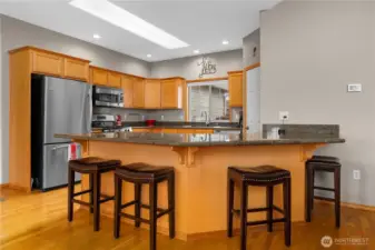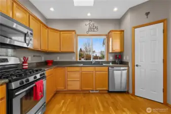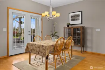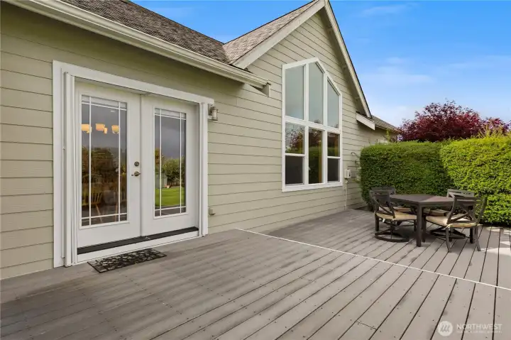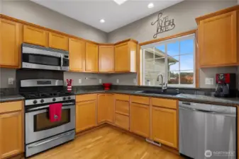 Welcome home to coveted Scatter Creek! This former model home has been tastefully updated and well taken care of. Beautiful hardwoods welcome you in to this primary on the main floor, open concept floor plan, lives like a ramble. Flowing floor plan includes 3 bedrooms and a large office with custom built ins. Primary has new 5 piece luxury bath and large walk in closet w/ custom built ins. The kitchen is a cooks dream with granite counters, gas range and large pantry. The three car attached garage also has adjacent rv parking. The outdoor entertainment space includes 2 large decks, 2/3 of an acre lot with fruit trees, raised beds, shed and a greenhouse. Enjoy the Mt. Rainier view and entertaining at this gorgeous home and community.