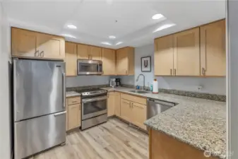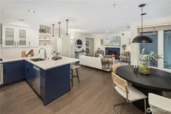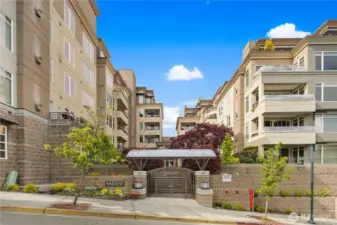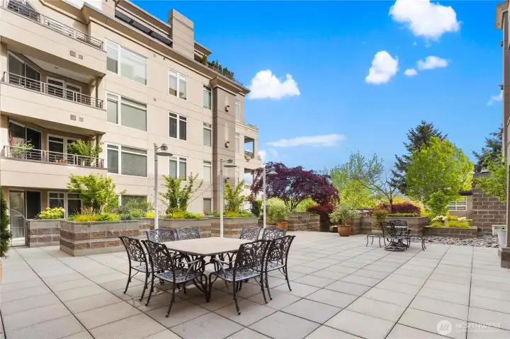 Gracious living in the heart of downtown Kirkland! A freshly painted, newly carpeted exquisite 2 bedroom , 1.75 bath. Updated kitchen, primary bath, hardwood floors & AC. Perfectly located over the garden courtyard w/ S. facing city views. Generous study that doubles as den. Gas fireplace creating cozy living & dining room. Below rental cap. Guest rental rooms available. 2 storage lockers.Well run HOA. Building recently painted inside & out. New roof & courtyard garden redesign. Pets allowed subject to restrictions. Minutes from transit & downtown shops & restaurants. Google a block away. 96 Walk Score. The best way to live in downtown Kirkland!