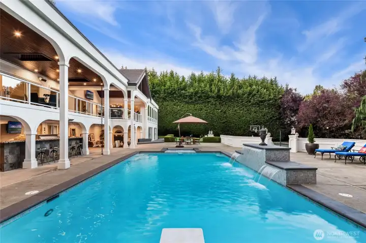 Experience modern luxury in Bridle Trails, North Bellevue, in this meticulously updated estate. Open, sunlit spaces with soaring ceilings create an inspiring setting for entertaining or daily life. The chef’s kitchen features a Quartzite waterfall island, Sub-Zero and Wolf appliances, flowing to a covered patio with fireplace and grill, perfect for year-round gatherings. The primary suite offers a spa-inspired bath and custom closets. Enjoy a home theater, gym/yoga space, indoor spa, diving pool, hot tub, outdoor fireplace, basketball/pickleball court, putting green, and beautifully landscaped grounds. Prime location near downtown Bellevue, top schools, and tech hubs—truly a lifestyle without compromise.