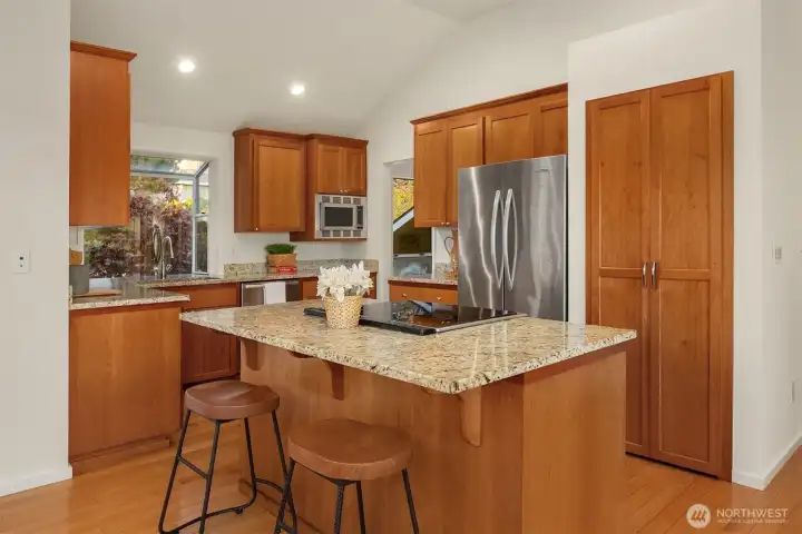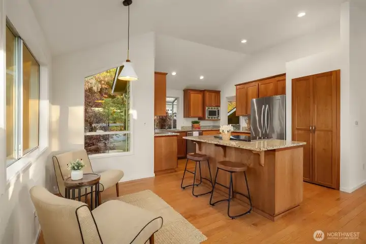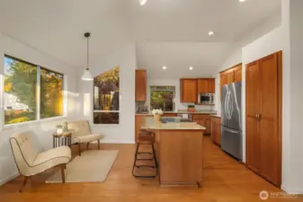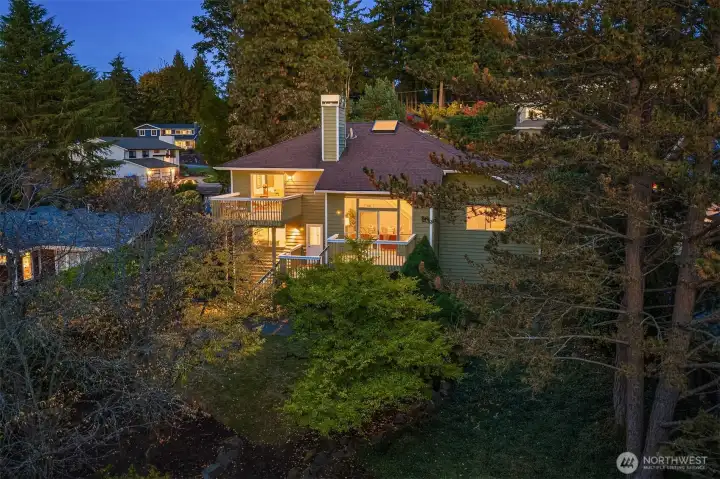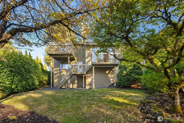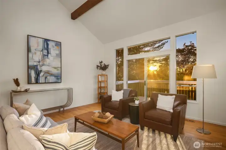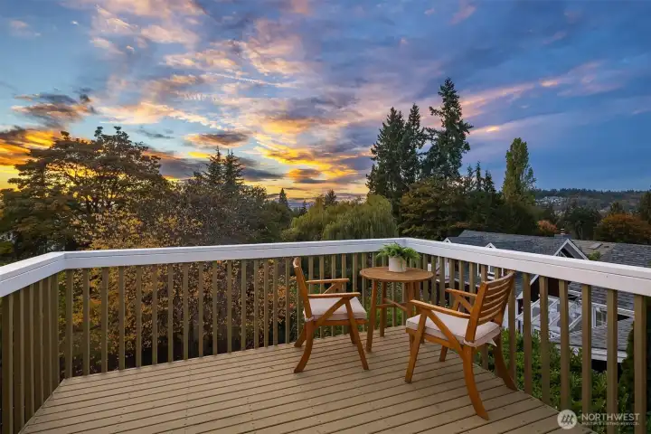 East of Market NW contemporary gem! Perfectly positioned on a sprawling 12,600 SF lot, at the end of a quiet dead-end street, this light-filled home offers stunning territorial views and incredible privacy. Inside, discover soaring vaulted ceilings, hardwood floors, and sun-drenched living spaces. Upon entering, you are greeted by the soaring ceilings and the cozy living room. Primary suite is on the main w/ en-suite bath & walk-in closet. On 2nd level the open floor plan seamlessly connects the living & dining rooms w/ an additional open-concept dining or flex space off the kitchen. Spacious kitchen w/ plenty of space to gather & host. 3 decks & large backyard - enjoy your space & privacy! Addt'l 500 SF of unfinished area below livingroom.