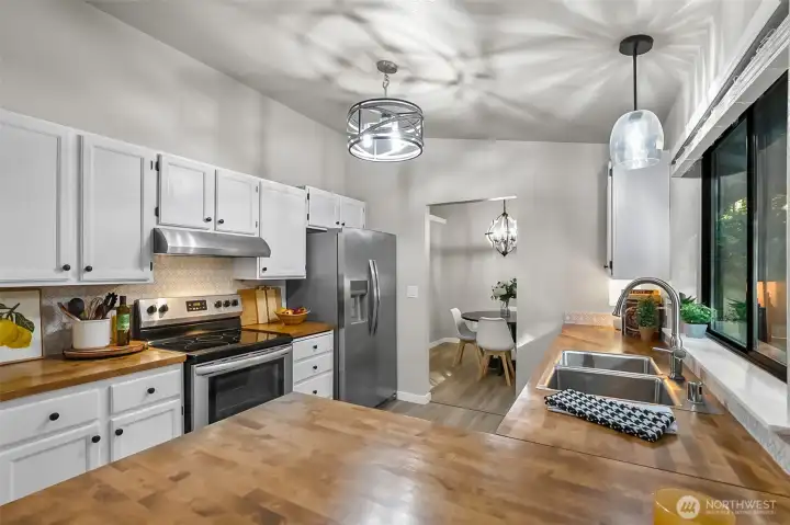 Turnkey 1,444 sq. ft. rambler in the desirable Artondale area! Located across from a greenbelt, this updated home offers privacy and style on a large lot. Features 3 bedrooms, 1.75 baths, a cozy family room with gas stove, and a bright kitchen with stainless appliances, bar seating, and ample cabinetry. Spacious primary suite with bath. Enjoy the partially fenced patio—perfect for entertaining. Meticulously maintained with designer touches throughout. Close to schools, shopping, and major routes for an easy commute!