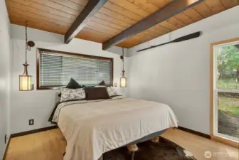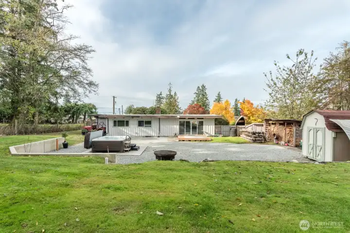 Come relax & enjoy this stylish mid-century modern retreat tucked on a private half-acre. This home sparkles with thoughtful updates that preserve its timeless charm. From the refreshed kitchen with abundant cabinetry & generous concrete counters to the updated bath. Large picture windows frame the natural surroundings & fill the home with light, while luxury vinyl plank flooring & wood fireplace insert with a live-edge mantel add cozy sophistication. Outside unwind on the spacious deck, soak in the hot tub and take in the peaceful setting with nature complete with fruit trees & storage shed. A carport plus bonus space for a home office or workshop complete this inviting property that blends mid-century character with everyday comfort.