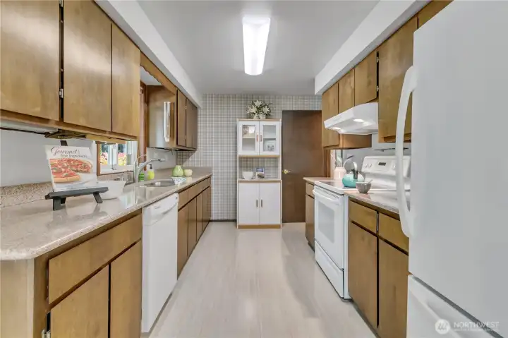 Lovingly maintained by the same owner for 55 years, this solid rambler offers timeless quality and spacious living in a prime location. Enjoy a large kitchen with eating space, a separate dining room, and both a family and living room—perfect for gatherings and everyday comfort. Situated on a fenced quarter-acre lot on a quiet, dead-end street, offering privacy and room to garden or play. Conveniently located within walking distance to groceries, shops, and other amenities. Pre-inspection and repairs list available