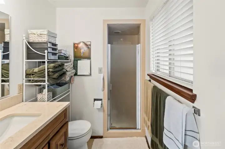 Beautiful custom built home in one of North Tacomas most desirable neighborhoods. Main floor level has three bedrooms two bathrooms, kitchen, living room with gas fireplace, dining room and utility room. Primary bedroom has three quarter bath and walk-in-closet. All new windows throughout. Large daylight dry basement with tall ceilings is plumbed for a third bathroom. New exterior paint and sewer line was replaced by the prior owner. Gas forced air and air conditioning. Huge enclosed flat backyard with covered patio and sprinkler system in front and backyard.