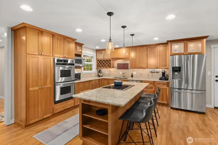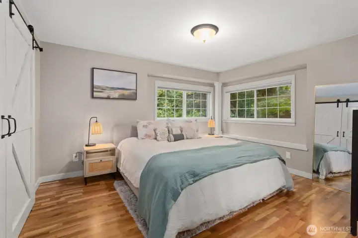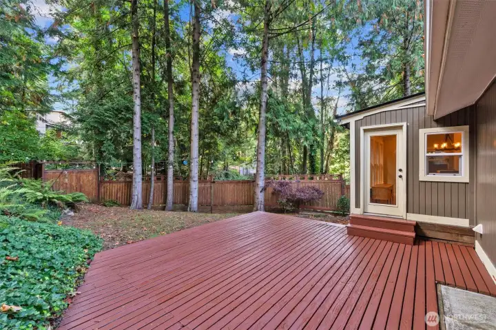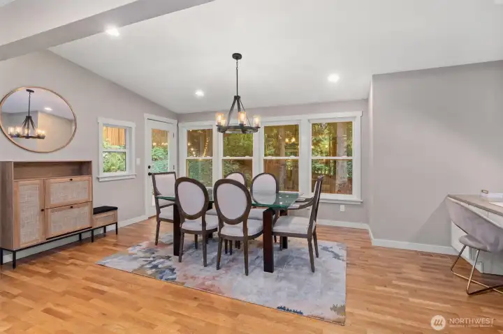 Exquisite one-story home in Issaquah, privately nestled among towering evergreens for a true forest sanctuary feel. Floor-to-ceiling natural light enhances the open, airy layout, blending comfort with modern sophistication. Enjoy serene, wooded views from every room and a rare sense of seclusion within a top-rated school district. Recent upgrades include a new roof (2023), premium heating, cooling, and air purification system, tankless water heater, and updated electrical. The primary suite offers a private bath, and the extended garage provides generous storage or workspace. Conveniently near the freeway, fine dining, and boutique shopping.