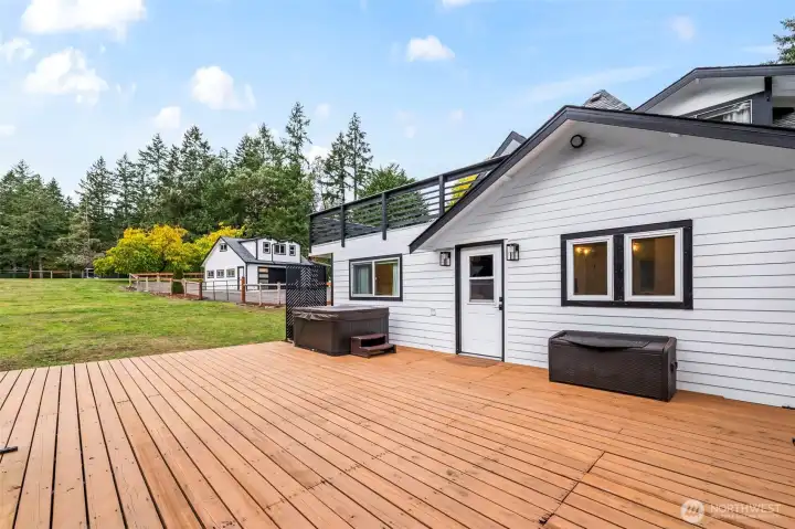 Country living within Gig Harbor—just minutes from Downtown Gig Harbor, Gig Harbor North (Costco, Target, Home Depot) and Hwy 16! This beautifully remodeled home shines with a brand-new kitchen, bathrooms, flooring, interior & exterior paint, new 4-bedroom septic, and fresh asphalt driveway. The main level offers a bedroom and 3/4 bath, while upstairs features a bedroom, office, and an additional 3/4 bath. Enjoy a rooftop patio, back deck with hot tub, and a 3-car detached garage (or 2-car + finished gym) with unfinished space above. Level, fully fenced 2.5 acres include outbuildings and carports—perfect blend of comfort, style, character and space!