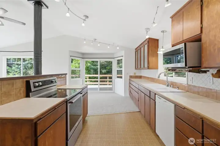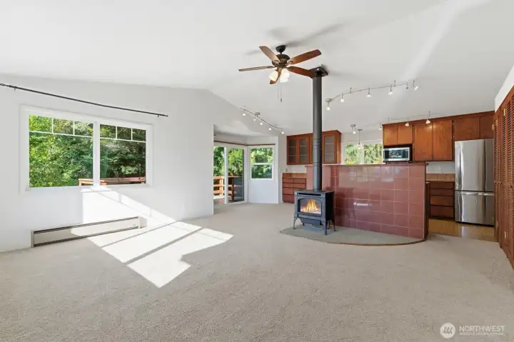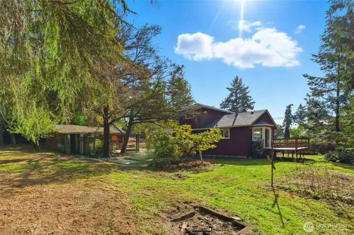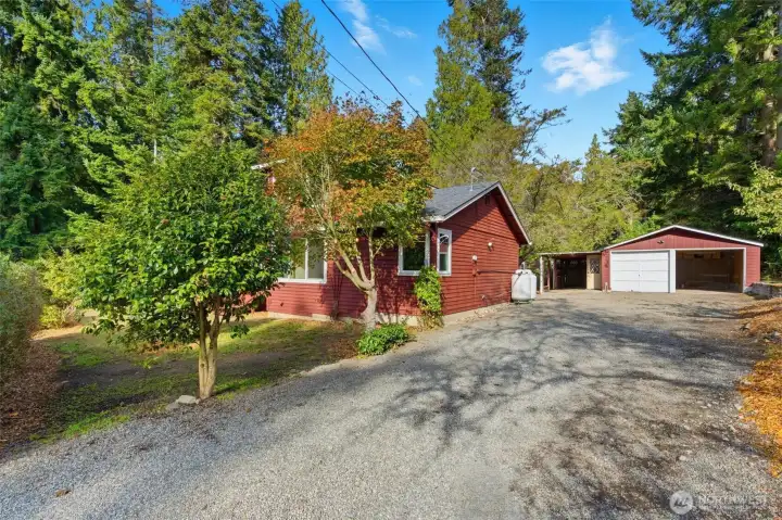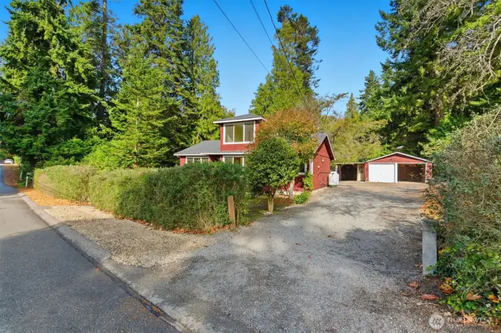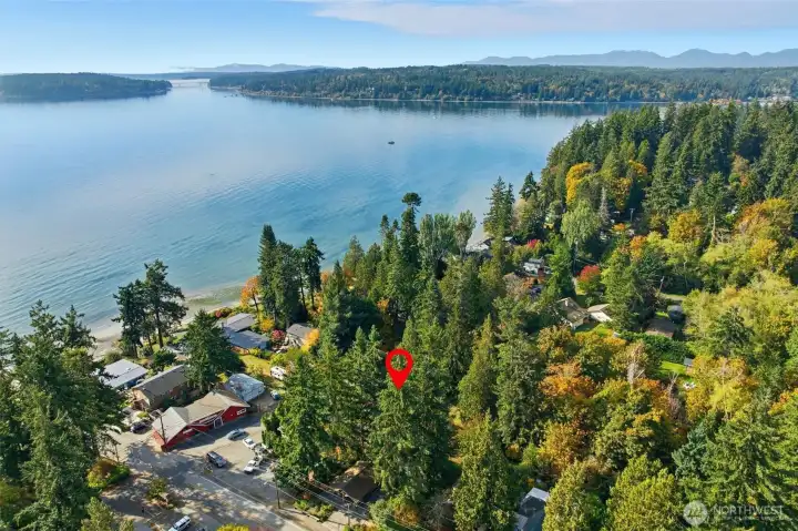 Rare opportunity to own a home in the heart of Indianola! Just steps from the Indianola Store, the dock and private beach. Featuring 2 bedrooms, 2 baths, 1,518 sq. ft. on .45 acres with partial water views. New carpet, fresh paint, and a newer roof. Open design connects the kitchen, dining area, and living room with a Lopi propane stove. A sunroom off the main entry welcomes natural light. Laundry/mudroom. Upstairs bonus room or oversized closet off of upstairs bedroom. Additional features include a two-car garage, carport, storage room behind the garage, and a tool shed, giving you plenty of space for projects and toys. Large private yard with loads of parking, fruit trees, and a stream running across the westside of property.