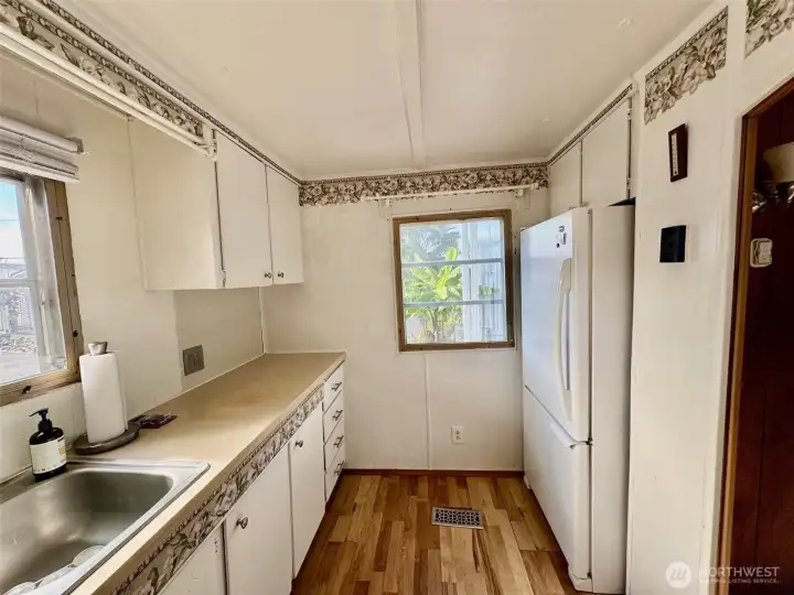Enjoy life in a cozy 1960's single wide retro time capsule. Take a step back into a simpler life in a beautiful setting that is close to everything.This home has been well maintained by its past owners with just minor upgrades. The best upgrade was in 2023 and it was a brand new HEAT PUMP. This home was originally placed here in 1967 I do believe.Most of the homes in this park are single wides from the 60's and are very art deco styled. There is a paved driveway next to the home that is long enough to park 2 cars in line and a storage shed at the end of the driveway. This home has large windows for natural light and real wood paneling plus a large bumpout in livingroom/dining area. There is too much to list plus LOCATION, LOCATION.