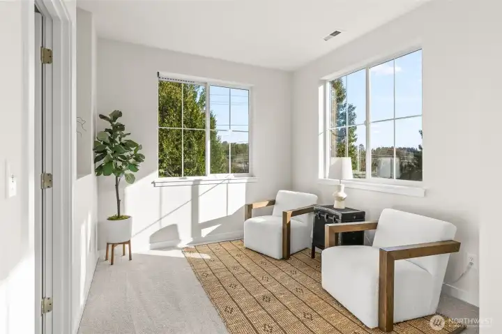 HOA dues are just $52 per month with NO rental cap, making this Northpointe townhome in Mill Creek an exceptional opportunity for homeowners and investors alike. Located in the highly desirable Northpointe community, this updated, move-in ready home offers flexibility, comfort, and convenience, with serene Thomas Lake views from the primary suite. Features include fresh interior/exterior paint, new carpet, 9-foot ceilings, and hardwood floors that enhance the open layout. The kitchen boasts granite countertops, modern appliances, a raised breakfast bar, and flows seamlessly into the living and dining areas? are ideal for daily living and entertaining. Step outside to a private? courtyard perfect for BBQs or relaxing. Both bedrooms are generous primary suites with walk-in closets and private baths; one suite includes a soaking tub, dual sinks, and a sitting area with lake views. An upstairs landing provides space for a home office or lounge. Additional highlights: attached two-car garage with built-ins, ample natural light, and thoughtful updates for a turnkey home. Just 1.5 miles from Mill Creek Town Center, near shopping, dining, trails, fitness studios, and with quick access to I-5 and Hwy 9. A rare low-HOA, rental-friendly property in a sought-after community.