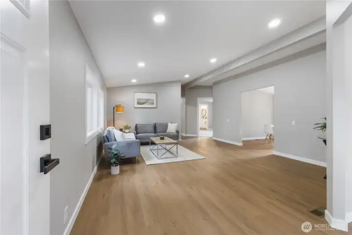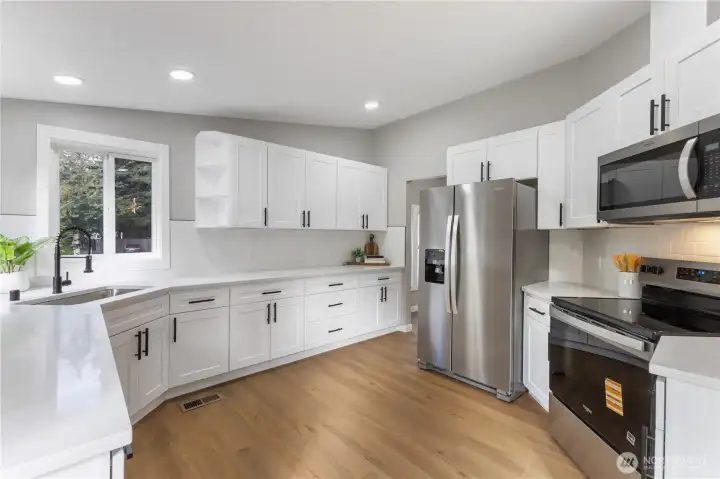 Welcome to this beautifully updated home featuring an open floor plan and a spacious living room perfect for relaxing or entertaining. The formal dining room adds a touch of elegance for special gatherings. The kitchen boasts stylish shaker-style cabinets, gleaming quartz countertops, and stainless steel appliances that stay. Enjoy the luxury of waterproof flooring. The private on-suite bathroom offers a serene retreat in the primary bedroom. Outside, you’ll find a fully fenced backyard ideal for pets or play, and plenty of parking for your convenience. Don’t miss this move-in-ready gem!