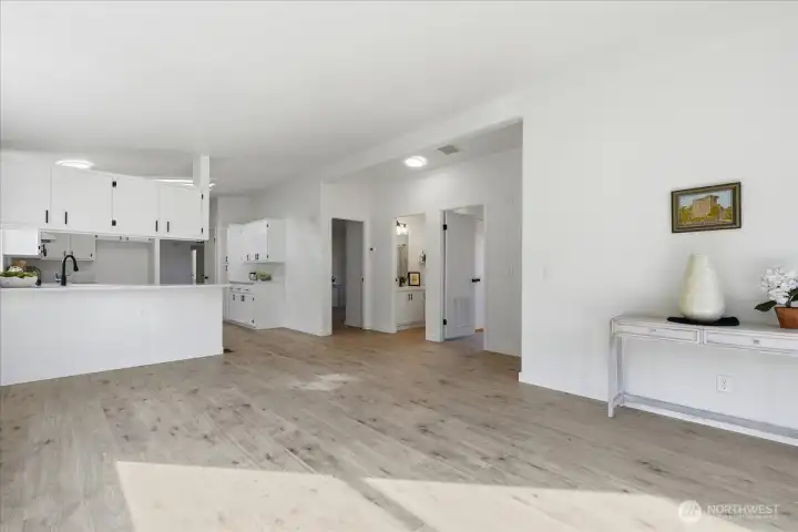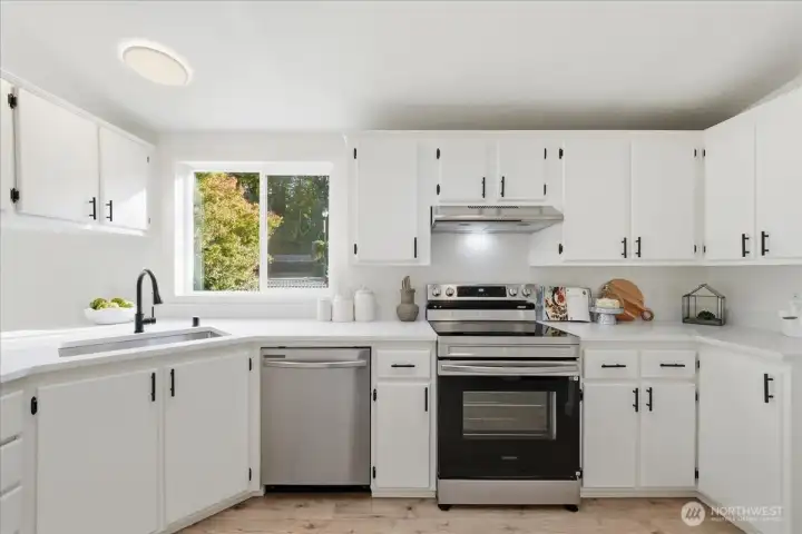 Beautifully updated and remodeled home on a corner lot in the heart of downtown Castle Rock. Shows like NEW! 1783 sf Open bright and light with high ceilings and excellent floor-plan. NEW paint in and out, Luxury vinyl plank flooring throughout.Spacious updated kitchen featuring quartz counters, NEW stainless appliances, breakfast bar, pantry. Big family room. Three large bedrooms Primary suite has walk-in closet, soaking tub. Detached garage plus carport. Fenced corner lot. Walk to Riverfront walk and town from this wonderfully located home. Move in READY!
