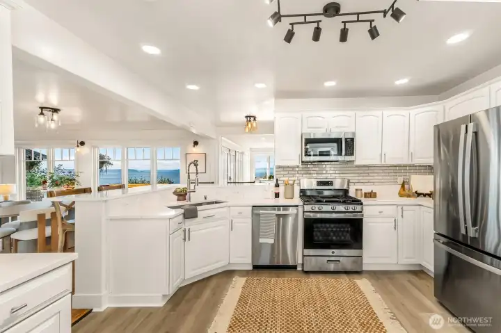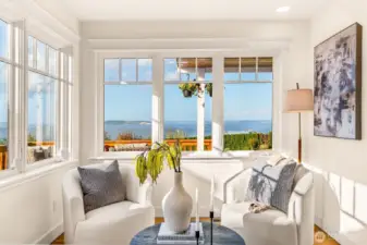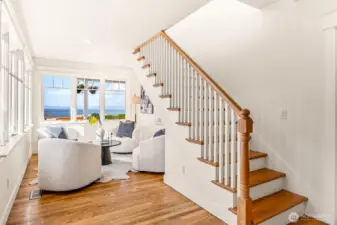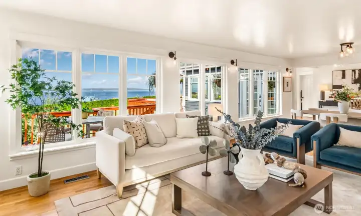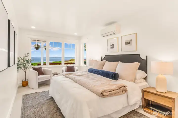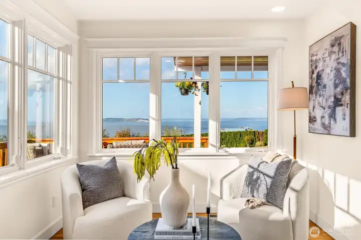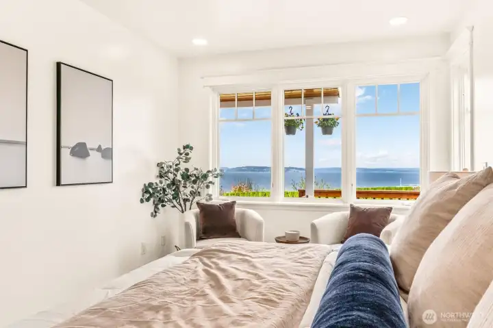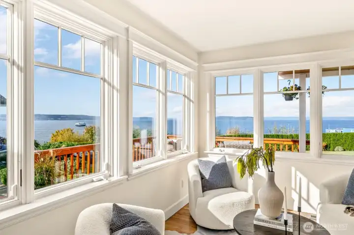 Perched above the Mukilteo waterfront with sweeping 180° views of Puget Sound, Whidbey Island, and the Olympic Mountains, this timeless 1905 Cape Cod has been completely renewed inside and out. Every detail reflects quality with updated systems, new finishes, and preserved period charm. The light-filled main-floor primary suite opens to a spacious front deck, the perfect spot to take in ferries, eagles flying by, vivid sunsets, and sparkling water views. Landscaped grounds, detached two-car garage, and a prime Old Town location surrounded by distinguished homes make this a truly rare find in Mukilteo.
