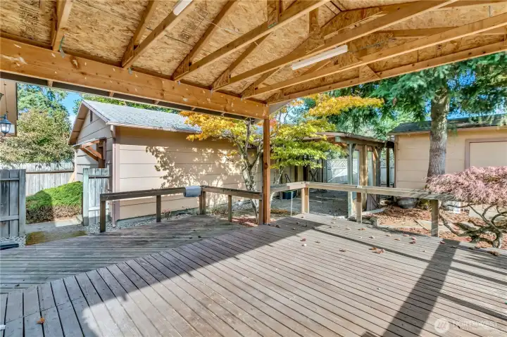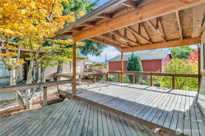 Hurry on this Affordable ONE LEVEL home that offers so much! The multifunctional floor plan is wonderful with separate living spaces, 3 bedrooms, 2 baths, Living room, formal dining and Family room, plus oversized 2+Garage with 560 sq ft! There is a storage shed and additional parking in rear off alley access. There is a large deck, numerous areas to relax. The yard is lovely with separate spaces to enjoy. Plenty of room for garden beds or? Great Freeway access and close location to shopping. There is a tenant moving out at end of month. Easy to show. Hurry on this one!
