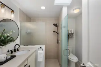 Surrounded by aromatic lavender & beautifully landscaped front & back yards, this Central District gem lives large with an open layout & an updated kitchen offering ample storage. The luxe primary suite features a walk-in closet, double vanity, & wooden French doors leading to the weather-resilient ipe deck. Recent updates include new mini-splits, lighting, & smart washer/dryer. Covered two-car parking with an adjoining large storage shed. Relax year-round under the rain/shine pergola with built-in electricity—perfect for hosting around the outdoor fire pit! Stroll to Temple Pastries, Métier Brewing, & nearby parks—minutes to downtown, Lake Washington, & new Judkins Light Rail Station. A rare blend of smart layout, style, and Seattle charm!