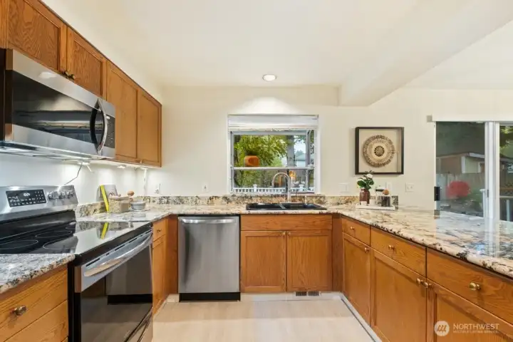 Beautifully updated home that blends comfort, style & quality throughout. Enjoy the generous chef’s kitchen featuring quartz counters w/plenty of work space, stainless appliances & informal eating areas all open to the comfy family room. King-sized primary w/spa-like ensuite & spacious bedrooms. This wonderful home has A/C, New quartz in the laundry room & bathrooms. New carpet & Luxury Vinyl Plank flooring plus a newer roof & hardi plank siding for peace of mind. Two-car garage w/storage & extra parking. Fully fenced fun backyard w/a large Trex-style deck & greenhouse ideal for entertaining, BBQs, gardening, pets & playtime. Super well located close to I-67, delicious food, great shops, services & transportation. Love where you live!