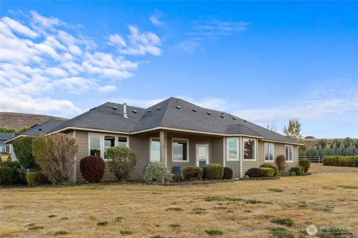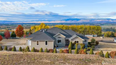 Perched on 3 acres overlooking the Kittitas Valley and the Stuart Mountain range, this beautiful home offers comfort, style, and space. The inviting living area features Brazilian cherry hardwood floors, a gas fireplace, and a coffered ceiling—perfect for cozy evenings or entertaining guests. The spacious kitchen is a cook’s dream with a breakfast bar, walk-in pantry, and sunny nook that captures the views. The primary suite is a private retreat, complete with a soaking tub, walk-in shower, and an expansive walk-in closet. Three nicely sized guest bedrooms. Enjoy outdoor living on the front and back patios—ideal for taking in sunsets or morning coffee. The attached 3-car garage provides plenty of space for vehicles and storage.