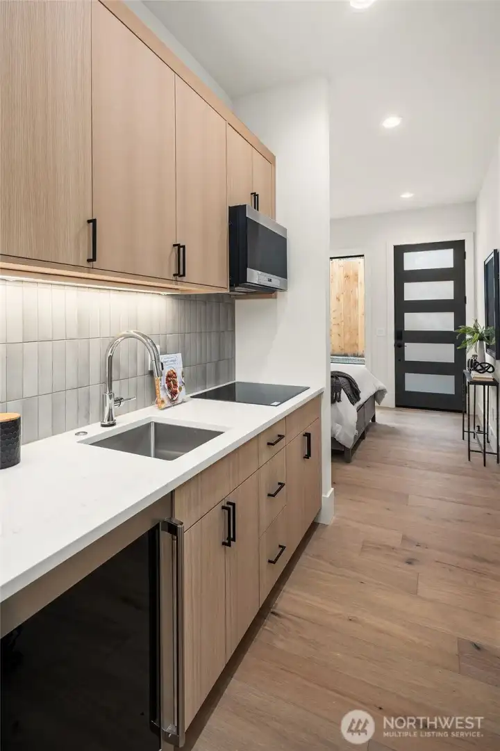 MN Custom Homes releases a transitional design in the heart of Maple Leaf. Chef's kitchen seamlessly opens to the 2 story great room. Private main floor gen-suite with kitchenette. Primary suite with stunning 5-piece bath & heated floors. Informal dining room. Outdoor covered living area, plus patio, ideal for entertaining. Upstairs laundry room. Spacious bonus room, ideally located above the garage. Private backyard. Smart Home and green features throughout, including solar panels. Convenient access to schools, shopping, Children's, & U-Village.