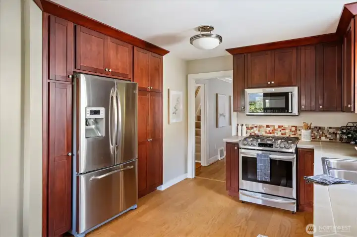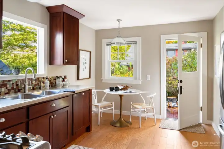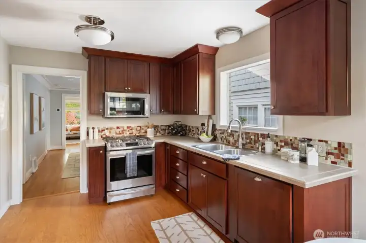 Located on a peaceful tree lined street, just minutes away from vibrant Queen Anne Avenue! Enter the warm home to honey-colored hardwoods, original fireplace, and built-ins combined with the remodeled kitchen and bath, the perfect combo for charm and convenience. Two beds, a bath, living and dining rooms complete the main floor. Head upstairs to the 3rd bedroom and great flex space for an office and TV room. You will find the laundry and garage on the lower level offering another large, flexible space. The covered front porch is perfect for morning coffee. Share amazing moments on the back patio with your guests while the afternoon sun shines. Nestled on sought after Queen Anne, you'll love the vibrant neighborhood and unbeatable location!