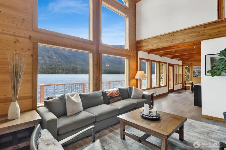 Welcome to your luxury turn-key retreat on Lake Wenatchee! This 3,200+ sf home features 3 beds, 3 baths and 3 levels full of natural light and stunning views. Multiple private decks & balconies invite you to the lake, while the home's gourmet kitchen and vaulted great room call you back inside. The main floor deck includes a 2nd outdoor kitchen. Downstairs find the main suite, 2 bedrooms, 2 full baths, 1 of 4 fireplaces and a private deck w/ hot tub. The ground level hosts a game room and kitchenette, fireplace, 5-person sauna & yoga room. Endless panoramic views from the new dock and 120+' of lake frontage. 10 min drive to restaurants, golf course, ziplining, rafting, snowmobile rental and trails; 30 mins to Stevens Pass & Leavenworth.