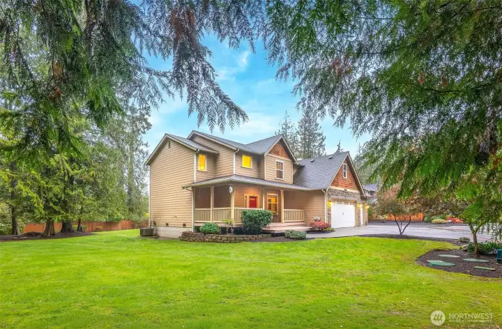 Just minutes from historic downtown Snohomish, this beautiful home offers the perfect blend of peaceful acreage living and everyday convenience! Nestled on 1.5 usable acres, enjoy room to roam & relax. A welcoming front porch invites you inside, where a thoughtful layout unfolds. The inviting living room is ready for cozy nights. The kitchen features a sunny breakfast nook! Just off the kitchen, a dining room, laundry room, powder bath, & garage access add ease to your daily routine. Upstairs, the spacious primary is complete with a five-piece ensuite & hidden bonus room. Three additional bedrooms & a full bath round out the upper floor. Outside, an attached three-car garage & a detached 20x20 shop offer ample room for hobbies/projects.