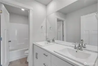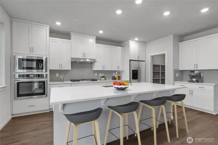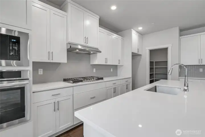 Elegant Slate cabinets w/Serene White slab quartz counters & stainless steel appliances, front/rear landscaping with sprinklers, fenced corner homesite, gas fireplace & more! Enjoy many luxury features including full backsplash, built-in convection oven and gas cooktop! Community includes half court basketball, playground and walking trails! Close proximity to freeway, schools & shopping. Ask about up to 3% of sales price toward closing costs! Sample photos. New Photos coming soon! Same home with Slate Cabinets.