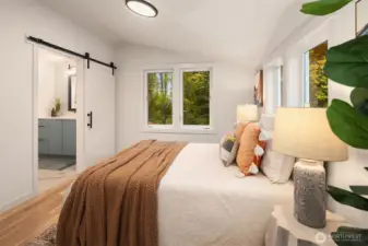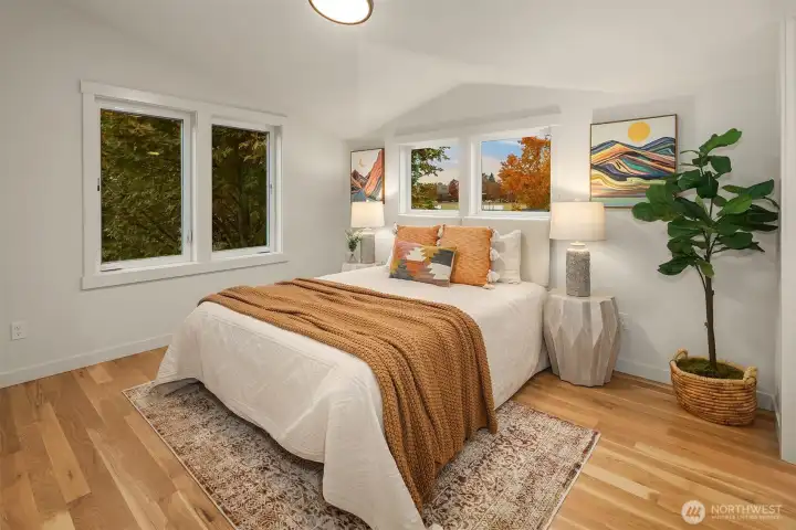 Every detail of this Collz Inc residence blends modern design with refined comfort. Sunlit, open-concept interiors flow effortlessly between living and dining spaces, anchored by a chef’s kitchen with quartz countertops, stainless steel appliances, and custom cabinetry. Real oak hardwoods throughout. Large windows and warm finishes fill each room with light. Upstairs, the primary suite offers a serene retreat complete with a spa-inspired bath and dual vanities. An additional bedroom provides flexible space for home office or guests. Outside, the charm of Ravenna is at your doorstep—enjoy nearby parks, cafés, and neighborhood dining, plus easy access to the Light Rail, Green Lake, and U Village for effortless everyday living.