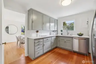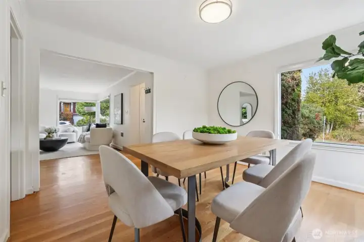 Come see this lovable home in Whittier! Situated on a corner lot at the corner of NW 80th and desirable Dibble! Nearly total 2,500 square feet with a rare layout—3 bedrooms and a full bath on the main level! Enjoy spacious living and dining areas plus a refreshed kitchen that blends function and style. The lower level offers garage access, a huge laundry area, half bath, and a groovy and inviting bonus space with a retro bar—perfect for entertaining. A ton of storage throughout the home plus an extra storage room on the lower level which could easily be re-organized into a 4th bedroom. Set on a large 5,220 square foot fully fenced corner lot with room to play, garden, or relax. A fantastic find in a prime location—come see it!