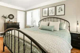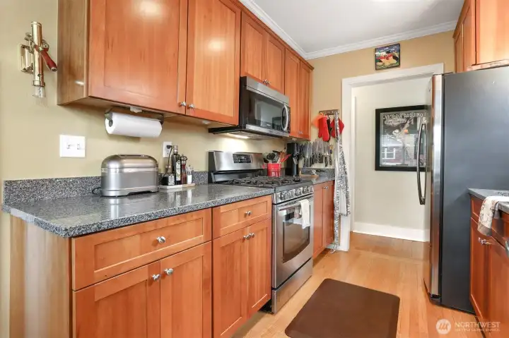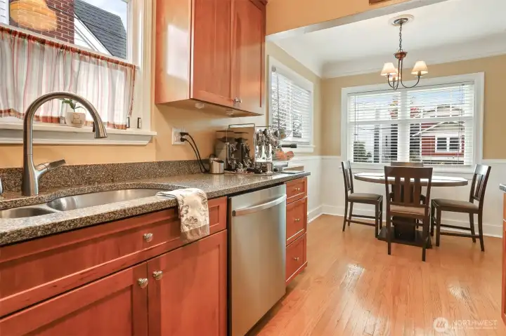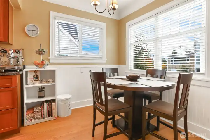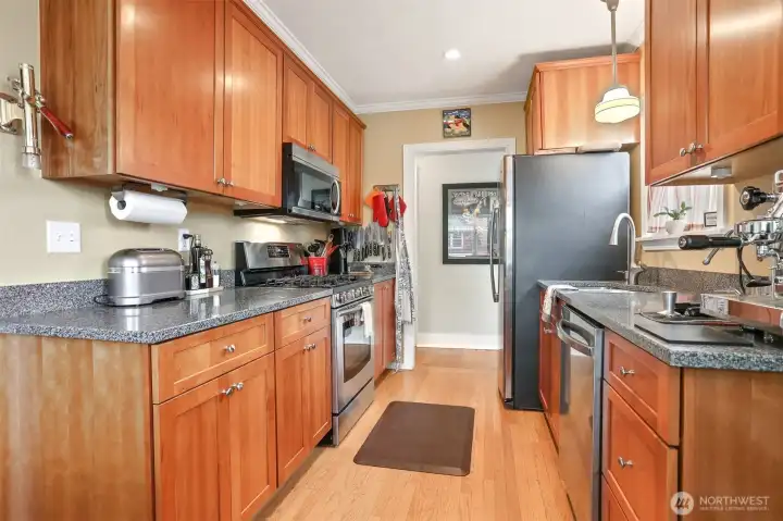 Adorable Green Lake area Bungalow. The perfect "package"! Wonderful location just steps to Green Lake, and several blocks to all the great amenities that Phinney Ridge has to offer. Too many upgrades to list and meticulously maintained. Main floor boasts 2 spacious bedrooms, 1 full bathroom, living room with wood-burning fireplace with built-in shelves on either side, upgraded kitchen and quaint dining area. Upstairs has the 3rd bedroom with extra storage. For you wine lovers, the basement includes your own Tasting Room, with a custom Wine Cellar, plenty of storage, laundry and 1-car attached garage. Outdoor patio off the kitchen, for BBQ and your morning coffee. Just enough (fully-fenced) yard for a pet or two. Be in before the Holidays!