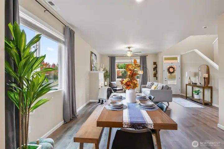 Immaculate 4 bedroom 2.5-bath home in the stunning Highland Greens neighborhood.This home opens to a large spacious great room w/gas. fireplace,large gourmet chef's kitchen w/stainless appliances,hardwood floors, quartz countertops & kitchen w/eating space make this a perfect spot for entertaining.The main floor primary bedroom includes a gorgeous bathroom w/a double-sink vanity,soaking tub & separate step-in shower w/ a large wqalk -in closet.Upstairs features 3 large bedrooms w/spacious closets & A loft for additional living area for office or family room. Gorgeous landscaping front and back with sitting area/small patio & playset.This popular neighborhood offers a central courtyard w/paths & a gazebo providing space to relax & play.