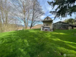 High above the fog, this beautiful home has a view of the top of Mt. Rainier and the Klickitat Valley! Fresh flooring, fresh kitchen, fun little hidden greenhouse and room for a large tribe this one is a keeper! The shop is large with a machine shed/open shop on one end and 2 stalls with hay storage on the other. Fenced and ready for a pony or three! Wonderful mature orchard and landscape. Adorable garden shed with a covered hot tub patio, chicken coop/condo and more! 8 outlets are generator friendly, there is a canning/cold room and the pellet stash can stay. This is Eagle country with several trees full of Eagles and their young. Do not miss this one, definitely one of a kind!
