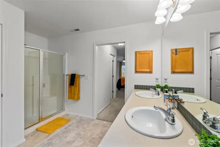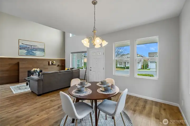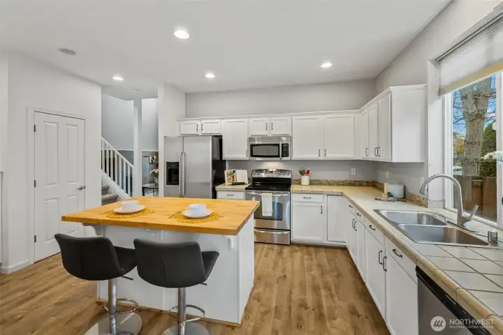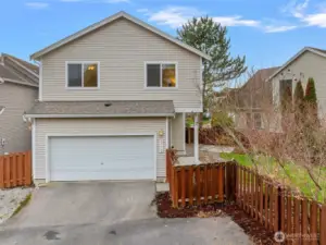 Beautifully maintained Model Home in the desirable Crosswater community! Bright and open floor plan with vaulted ceilings, abundant natural light, and a custom gas fireplace in the living room. The chef’s kitchen features a butcher block island with bar seating, ample counter space, cabinets, and a pantry. Large fenced backyard includes a covered patio and paved area perfect for outdoor dining. Upstairs offers a spacious primary suite with a 5-piece bath and two closets, plus a separate laundry room. New furnace and newer water heater for peace of mind. Attached 2-car garage off a private alley provides extra parking and privacy. Crosswater offers parks, playgrounds, and is in the Lake Stevens School District.