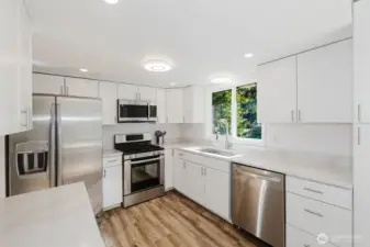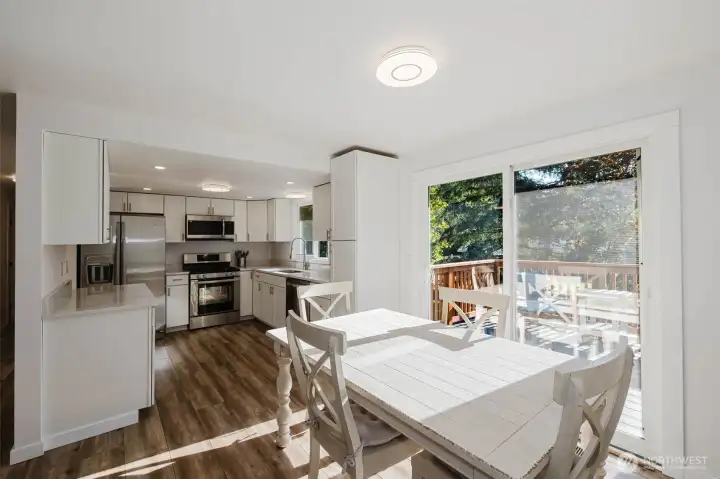 Completely remodeled one-story with basement home in the desirable Manette area on a quiet dead-end street. Enjoy a brand-new kitchen, fresh paint, new flooring, and carpet throughout. The cozy living room features a fireplace, and the spacious primary suite offers a large walk-in closet and private deck. Two bedrooms and a full bath on each level plus a large family room downstairs provide flexible living space. Spacious deck off the dining area is great for entertaining or relaxing. Newer roof, RV parking, and a two-car garage add convenience. Huge yard and storage shed complete this move-in-ready home!