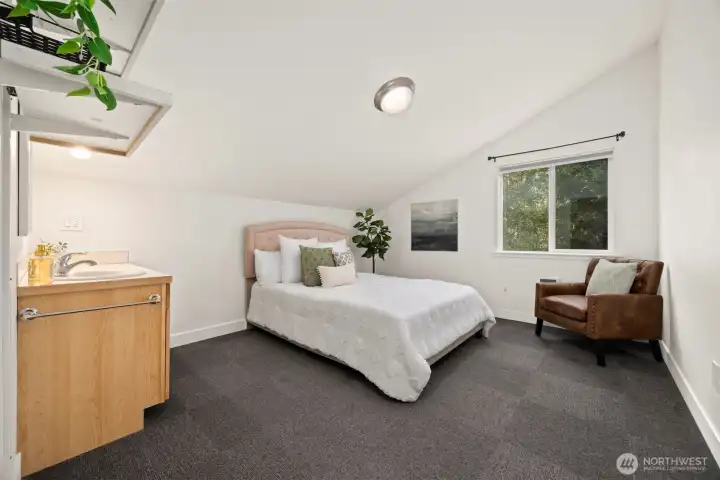 Contemporary Gem in Happy Valley. Don't miss this great home on a 1/3 acre lot with easy access to WWU, Sehome Village, Fairhaven via all modes of transportation. Stylish, light-filled living space surrounded by trees and low-maintenance native plantings. Stove, Refrig, W/D & fireplace are new since 2021. Nifty features include bathroom vanities in every bedroom. solatube skylights, roomy bonus room for extra storage as well as attached 8x28" shed. ADA accessible throughout main level, including ADA bathroom with tub. Lots of off street parking, side deck with space for BBQ, and lots of potential to add ADU, more garden area and more. Has been both a 4-5 room rental OR a great single family home.