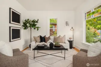 Built in 1893 and reimagined with care, this Victorian home blends historic soul with uncommon craftsmanship. If it looks like wood, it's wood. If it looks like slate, it's slate. Artisan Zellige tile from Morocco, custom MOD cabinetry, live edge shelving, hickory floors, all set below 19th century antique stained glass. No mass-produced materials here, just timeless textures and intentional design. The backyard features a modern deck, lush lawn, and a garage-turned-speakeasy perfect for gathering. All nestled between Capitol Hill and Madrona, with walkability to parks, cafés, and community. Brand new appliances, a new furnace and upgraded electrical panel ensure a seamless living experience. This is a home with nothing to hide.