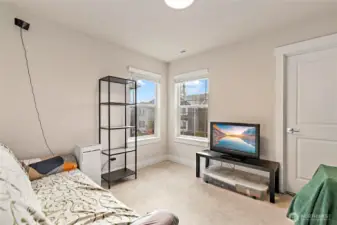 Located in the quiet Stratton Crest community is just off a cul-de-sac, this home has high quality finishes throughout & 2 Primary Bedrooms. 1 on the lower entry level w slider to the patio that is perfect for office, bonus room, home gym or home theatre. 2nd primary Master suite on top floor w/slab quartz counter & double vanity. 2 add'l spacious BRs & laundry room complete upper level. In between the levels, you will find the large living room w gas fireplace & full height tile surround. Kitchen w slab quartz, soft close cabinets & huge island. There is also a slider to the front deck off the kitchen. Large dining room for plenty of entertaining. Lots of guest parking, community park & low HOA dues. Close to Park n Ride & Martha Lake.
