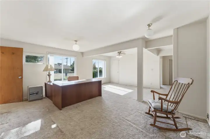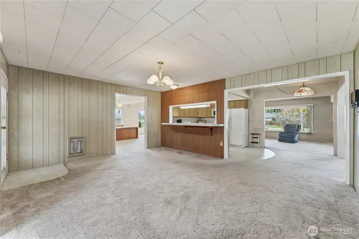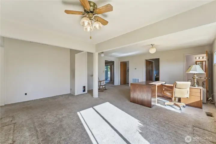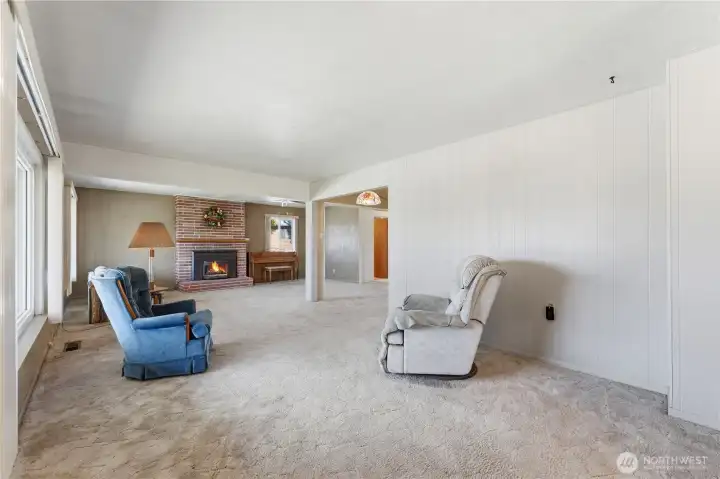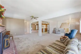 Spacious one level 3-bedroom, 3-bath home featuring a bright living room, cozy family room with a gas fireplace insert, and a kitchen that opens to an expansive dining room ideal for gatherings. Step outside to a manicured yard with a covered deck and patio - the perfect space for relaxing, entertaining, and a backyard garden. Enjoy the two-car garage with additional shop space, a storage shed, and extra driveway parking for multiple vehicles or an RV. A warm, welcoming home with space for everyone to live, work, and play. A must-see!