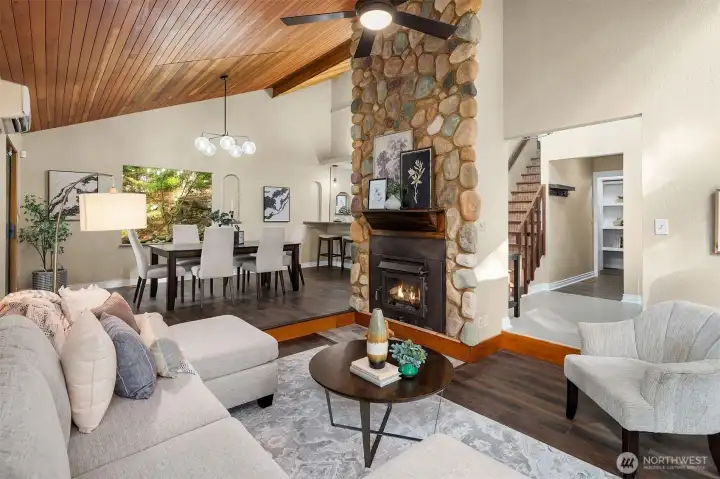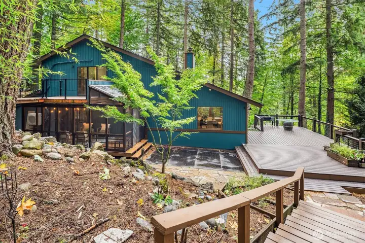 Inviting Northwest contemporary home in desirable Mirrormont. Wooded and wonderful with an expansive deck and screened porch to enjoy nature year-round. Recently updated with a new roof, fresh interior, and exterior paint in 2025, the home features a gourmet kitchen with high-end appliances, including a Wolf 6-burner range and Thermador double ovens. Spacious dining room with deck access. A charming river rock gas fireplace warms the living room with expansive windows looking out to the stunning evergreens. The primary suite offers vaulted ceiling, updated double-vanity 3/4 bath, and walk-in closet. Enjoys direct access to the upper deck and sky bridge to the upper yard with a fire pit. Highly regarded Issaquah Schools.